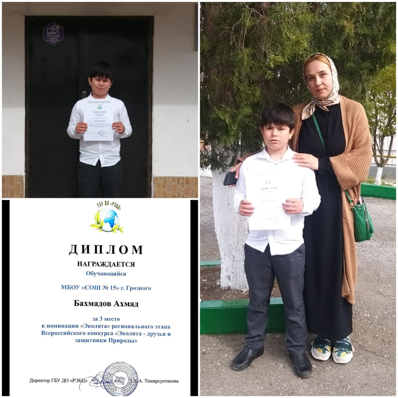 Ученик нашей школы Бахмадов Ахмад занял 3 место в номинации "Эколята" регионального этапа Всероссийского конкурса "Эколята- друзья и защитники Природы".