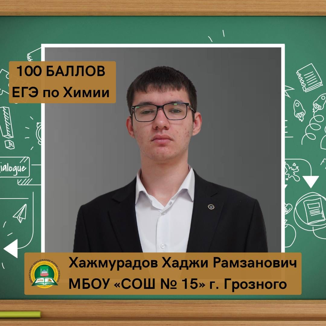 18.07.2023ВЫСОКОБАЛЛЬНИКИ - 2023 У нас замечательные новости! Хаджи Рамзанович Хажмурадов, ученик МБОУ «СОШ № 15» г. Грозного, набрал 100 баллов на ЕГЭ по химии. «Было около двух часов ночи, когда результаты ЕГЭ по химии стали доступны через «Госуслуги». Когда увидел надпись «Химия-100», я просто не мог поверить своим глазам. Сам экзамен я писал довольно спокойно, без волнения, но и в самых смелых мечтах не надеялся на 100 баллов. Следующие полчаса я провел в состоянии неподдельной радости и удивления. Я готовился к химии с октября, и ближе к экзамену мои пробные работы оценивались в 85 баллов, а тут вдруг 100. Я сразу же поделился этой замечательной новостью с моими одноклассниками и классным руководителем, и оказалось, что они радовались за меня даже больше, чем я сам. Следующие пару дней были полны поздравлений и пожеланий успеха. Весь учебный год был напряженным и требовал много усилий. Я потратил на подготовку немало времени, но иногда давал себе отдохнуть. В такие дни я играл, общался с друзьями или спал после школы. Но в последние три месяца я сосредоточился на учебе с особым рвением. И полученный результат стоил всех усилий. Вопрос о том, стать врачом или нет, возник еще в 10 классе. Я, конечно, рассматривал и другие интересные специальности, но моя любовь к точным наукам показала мне, что врач - это отличный выбор со множеством разнообразных направлений. Благодаря моему учителю химии Мархе Хасановне Апаевой, дополнительным занятиям с Хавой Сайпудиновной Сатабаевой, поддержке родных и близких, а также постоянным тренировкам и решению задач везде, где только возможно, мне удалось достичь такого результата. Я надеюсь, что смогу поступить в престижный ВУЗ и получить качественное образование», - прокомментировал свой успех наш стобалльник. Дала тlаьхье беркате йойла! #ЕГЭ2023 #ГИА11 #стобалльник #высокобалльникиГрозного2023 #химия #ГПН_2023 #ГодПедагогаНаставника #ГодПедагогаНаставникавЧР #УчитьВдохновлятьРазвивать2023 #Выпуск23МарафонПобед #школьникиГрозного #системаобразованияГрозного #ЗелимханАхматов #ДепобрГрозный