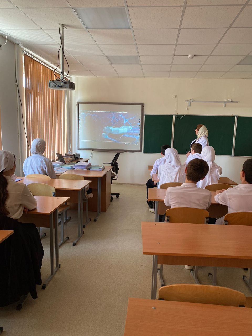 Заместитель директора по методической работе Исламханова Х.А., совместно с Чакаевой Я.В., учитилем биологии, и Зумсоевой Е.А, учителем математики, организовали для учащихся 5-10 классов возможность принять участие в проекте по цифровой экономике, в котором приняли участие 85 учащихся разных возрастных категорий. Основной задачей данного мероприятия являлось знакомство детей с новшествами в медицине и квантовых вычислений. Для детей было подготовлено своего рода путешествие в мир микровселенную, где они смогли узнать поближе квантовые технологии и их применения в медицине. Были презентации, видео, задания разного уровня: от простых до самых сложных. Участники смогли закрепить полученные знания. По окончании все участники получили сертификаты, а выделившие были награждены дипломами.
