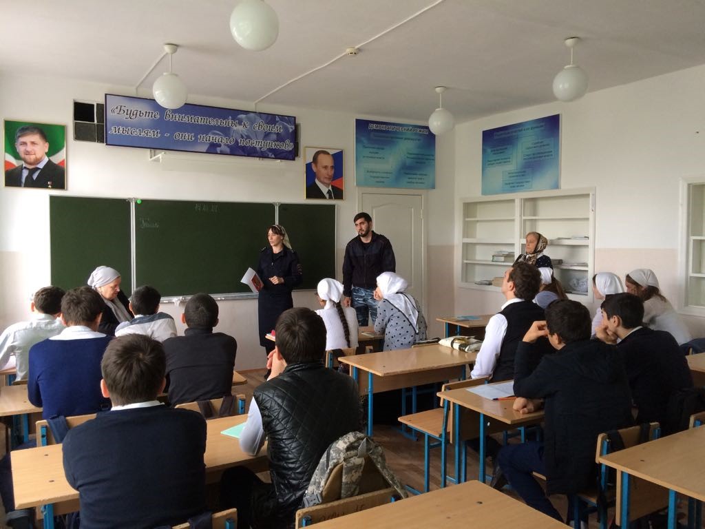23.10.2017Инспектор по делам несовершеннолетних Батаева Олеся и участковый Ленинского района Сабиев Шамиль встретились с учениками 9-х классов.