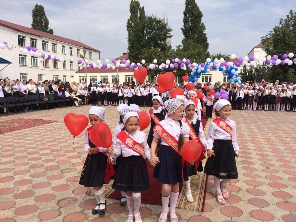Торжественная линейка открывались гимном Российской Федерации, и Чеченской Республики, после которого директор школы Ахметханов Магомед Сайдахмедович поздравил всех с праздником и пожелал успехов в овладении знаниями.