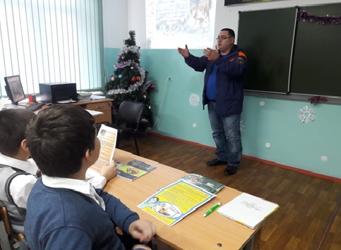 Спасатели ПСО отряда МЧС России Мусахаджиев Т.Р. и Мударов Р.В., провели беседу: «Тонкий лед-опасен! Напомнили ребятам о том, что выходить на тонкий зимний лед очень опасно и играть возле водоемов без взрослых категорически запрещается. Затем привели примеры реальных историй, когда люди из-за собственной беспечности проваливались под лед. Во время беседы ребята повторили основные правила безопасного поведения на водных объектах, что нужно делать, если они стали свидетелями несчастного случая на льду.